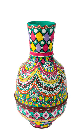エジプト装飾されたカラフルな陶器の花瓶 アラビア語 コラ 白い花瓶の背景をぼかしに の写真素材 画像素材 Image
